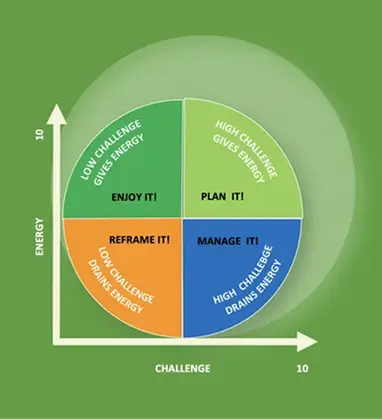 Each quadrant has 3 simple approaches to better management of timer and energy.